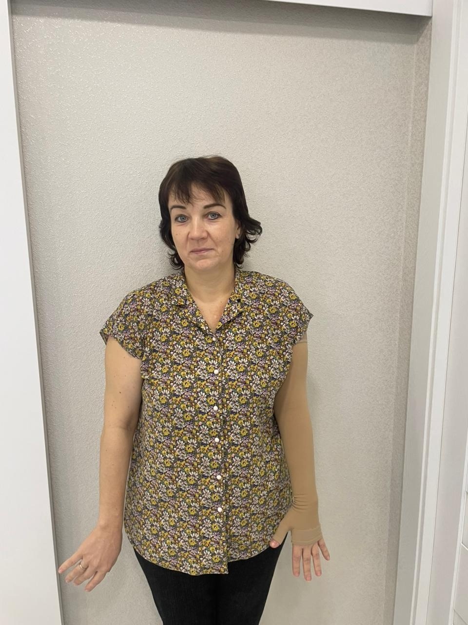 Дорогие друзья, с радостью сообщаем, что наш проект продолжает поддерживать пациентов, прошедших лечение онкологических заболеваний, и помогает им справляться с такими проблемами, как лимфедема. На днях одна из наших пациенток завершила курс лечения лимфостаза и получила компрессионный рукав, который станет верным помощником на пути к восстановлению.